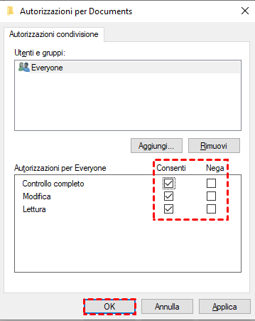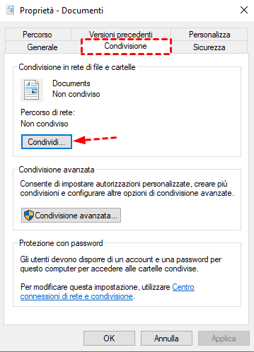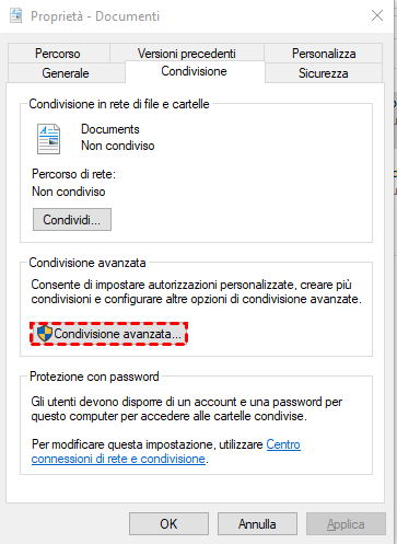 Anche se la cartella è stata condivisa, i dispositivi sulla rete potrebbero avere accesso solo in lettura. Se desideri consentire anche la modifica o la cancellazione dei file, puoi configurare le autorizzazioni avanzate.
