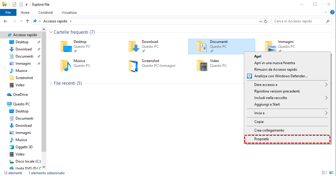 1. Fai clic con il tasto destro sulla cartella che vuoi condividere e seleziona Proprietà.