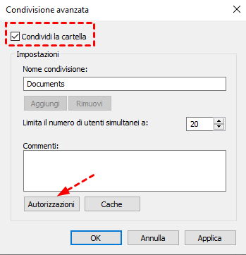 Modificare le Autorizzazioni di Condivisione