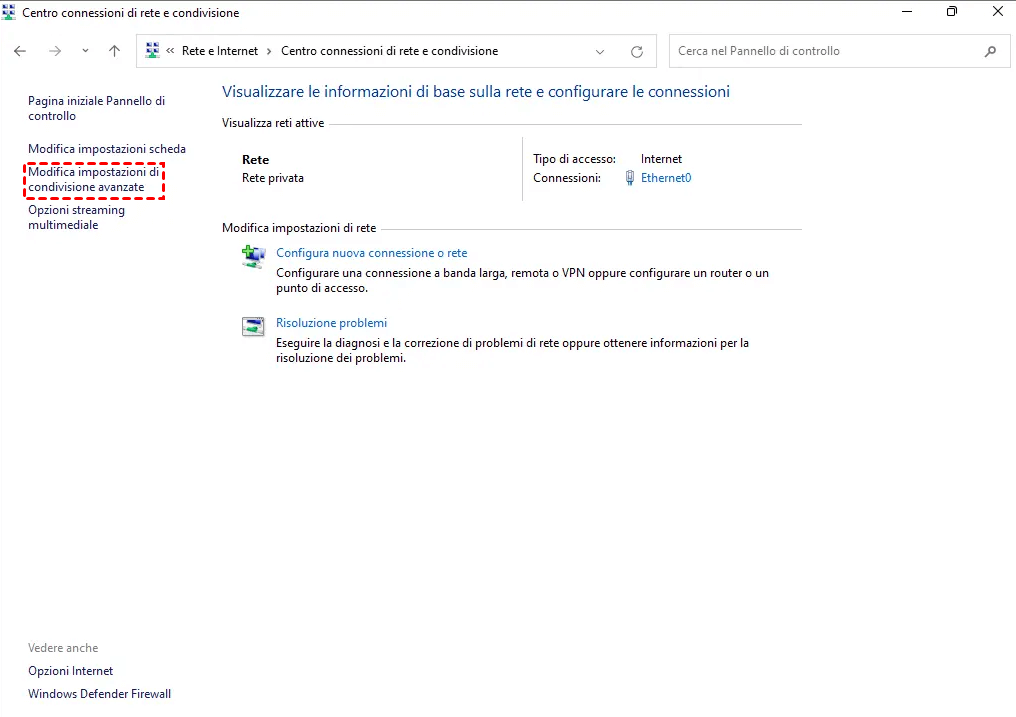Passaggio 2: Abilitare la Condivisione di File e Stampanti