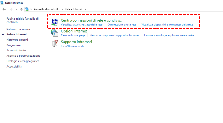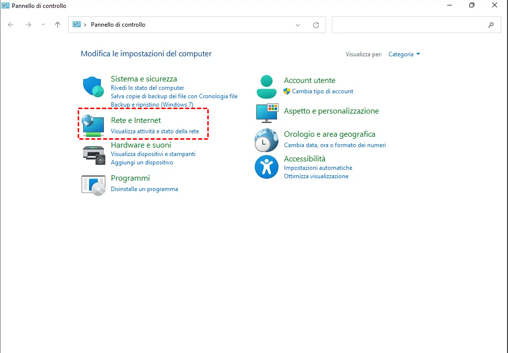 2. Nel Pannello di controllo, seleziona Rete e Internet.