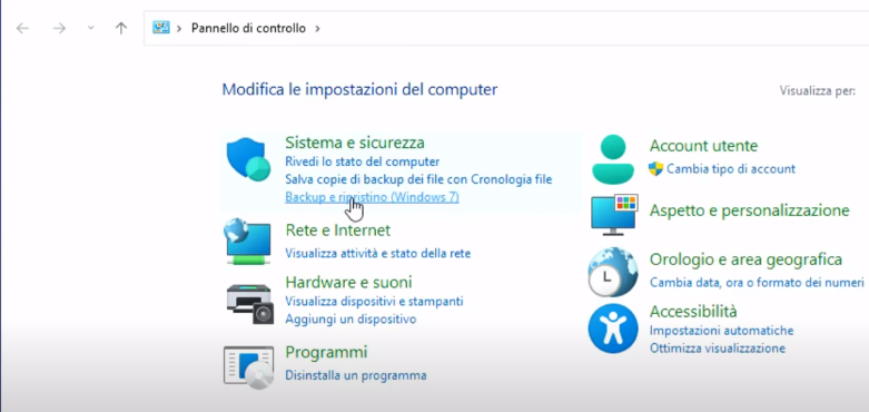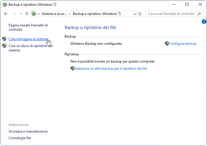 Metodo 2: Usa la funzione "Backup e ripristino (Windows 7)"