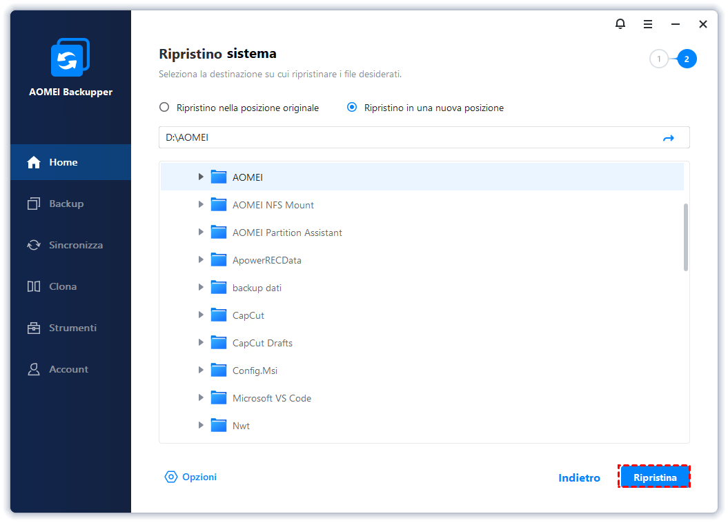 Metodo 1: Ripristino immagine di sistema con AOMEI Backupper