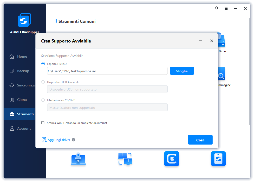 Creare disco di ripristino Windows 10/11 su chiavetta USB con AOMEI Backupper