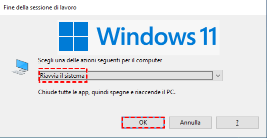 3. Fare clic sul menu a discesa, selezionare "Riavvia il sistema" e premere "OK".