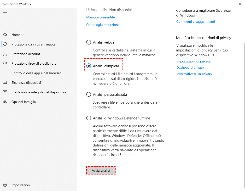 5. Selezionare Analisi completa per assicurarsi che il malware venga rimosso dal sistema. Quindi fare clic su Avvia analisi.
