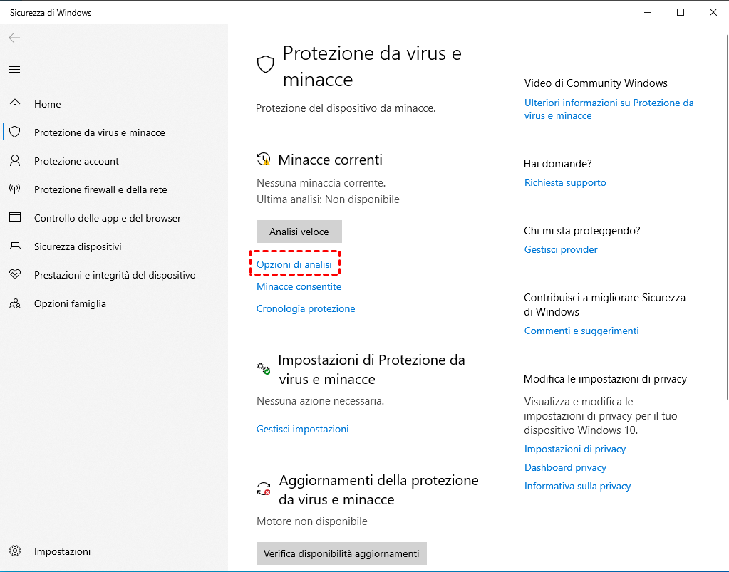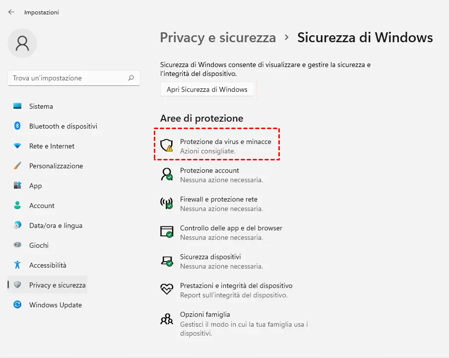 3. Fare clic sull'opzione Protezione da virus e minacce.