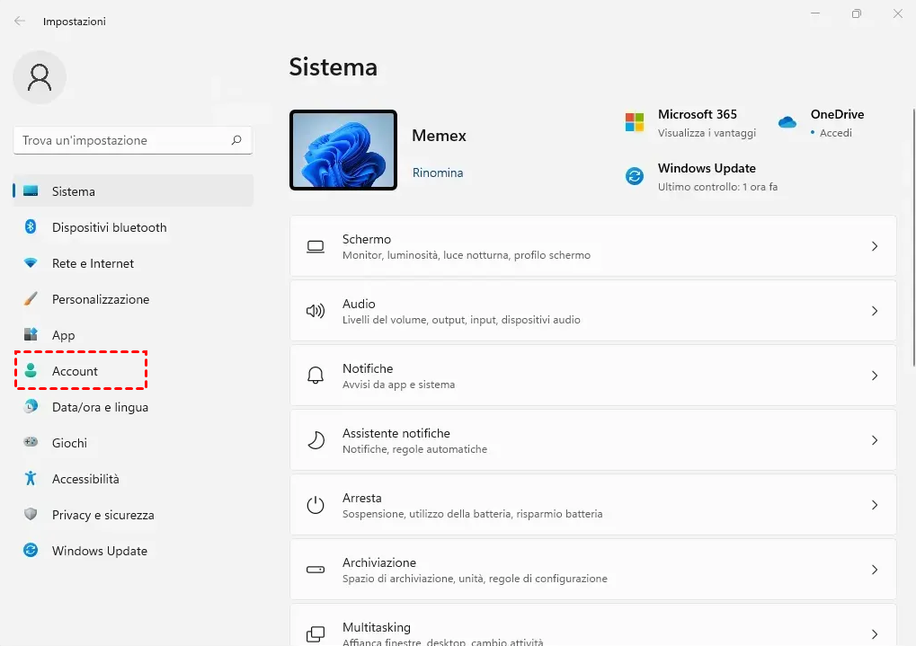 1. Premere Windows + I sulla tastiera per aprire Impostazioni. Fare clic su "Account" nel pannello di sinistra.