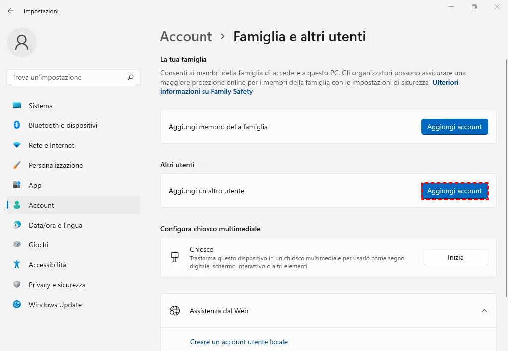 3. Quindi fare clic su "Aggiungi account" sotto altri utenti.