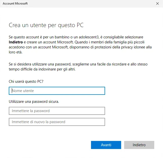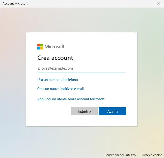 5. Quindi fare clic su "Aggiungi un utente senza un account Microsoft".