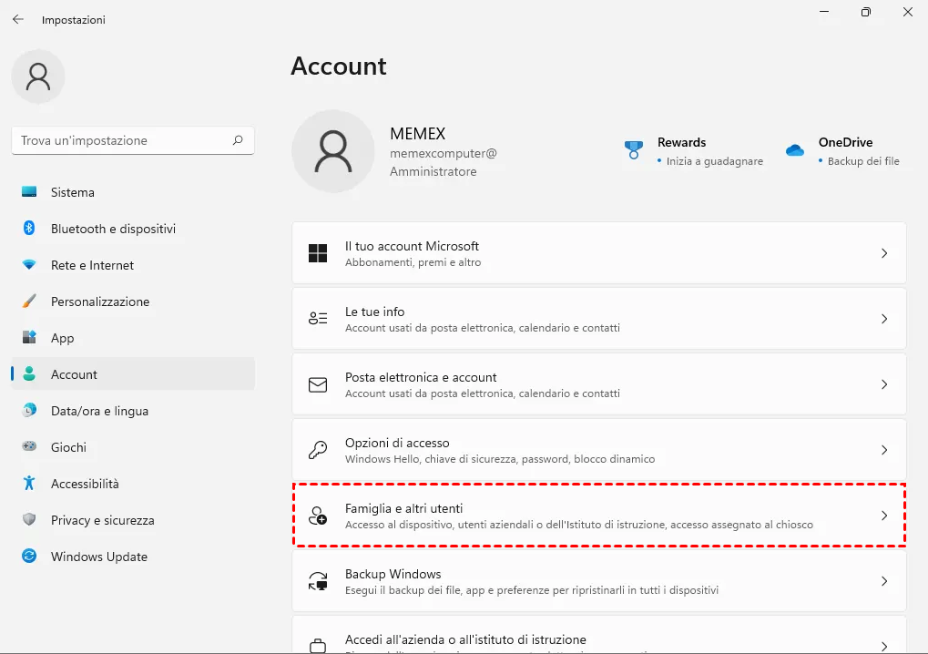 2. Fare clic su "Famiglia e altri utenti".