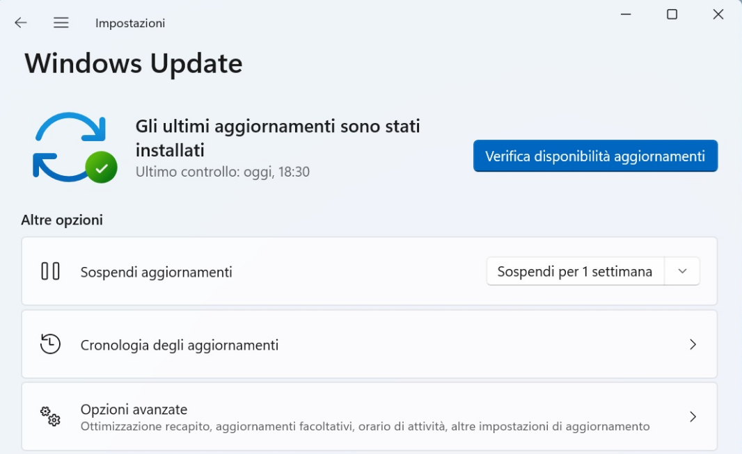 3. Fare clic sul pulsante "Verifica disponibilità aggiornamenti" per avviare il controllo di eventuali aggiornamenti disponibili per Windows per il PC.