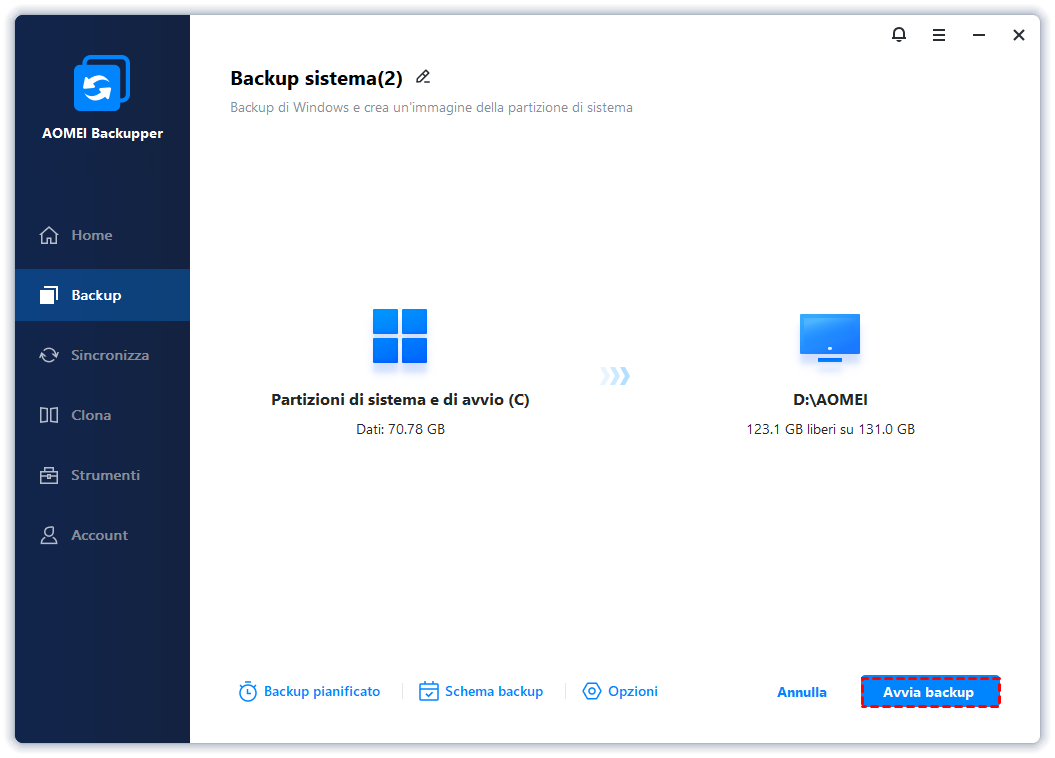 Passo 4. Conferma tutte le impostazioni e fai clic su Avvia Backup per eseguire il backup del sistema in Windows 11.