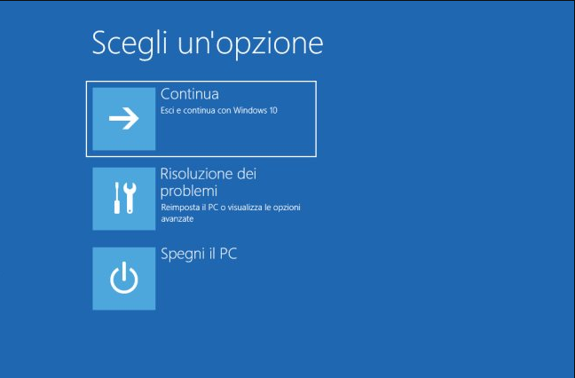 2. Nell'ambiente di ripristino di Windows, scegli "Risoluzione dei problemi" > "Opzioni avanzate".