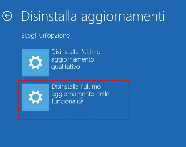 3. Selezionare "Disinstalla l'ultimo aggiornamento delle funzionalità".