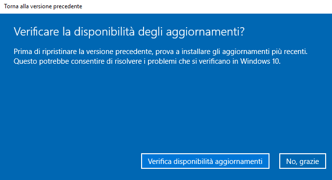 5. Vedrai un avviso che ti chiederà di verificare gli aggiornamenti. Scegliere "No, grazie".