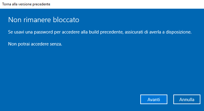 7. Leggere l'avviso sulla password e fare clic su "Avanti".