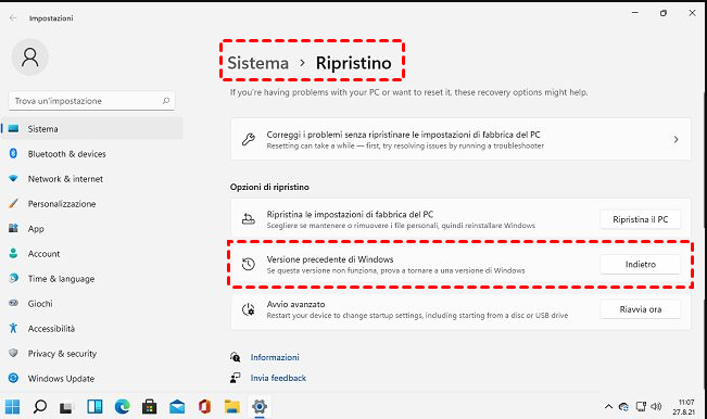 Parte 2: Ripristinare Windows 10 su Windows 11