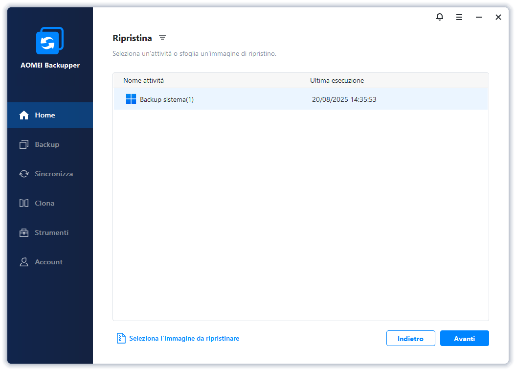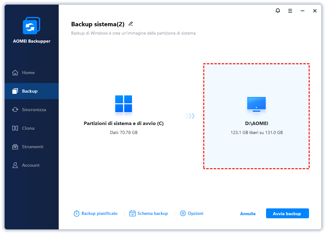 Metodo 4. Ripristinare Windows 10 da Windows 11 utilizzando AOMEI Backupper