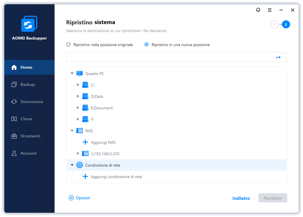 Con il file immagine di backup creato, puoi ripristinare facilmente il sistema e i dati in caso di crash del computer o perdita di file. Scaricare gratuitamente AOMEI Backupper per provarlo subito!