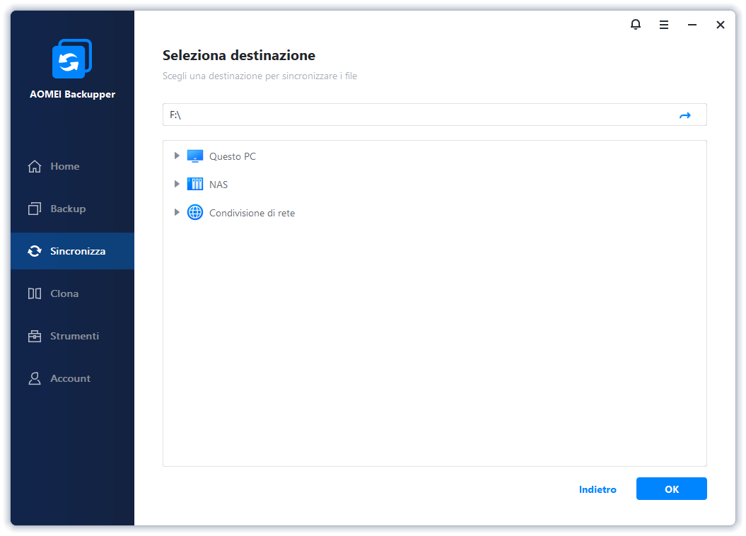 Come comando pratico in Linux, Rsync può essere utilizzato in Windows 10/11/8/7, ma il processo è complicato e richiede tempo. Per eseguire il backup e la sincronizzazione dei file in locale e in remoto, puoi anche utilizzare AOMEI Backupper in Windows come alternativa a Rsync.