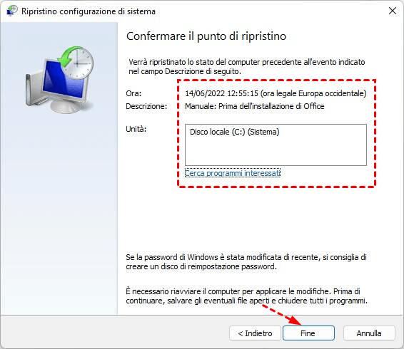 Usa il Ripristino del sistema