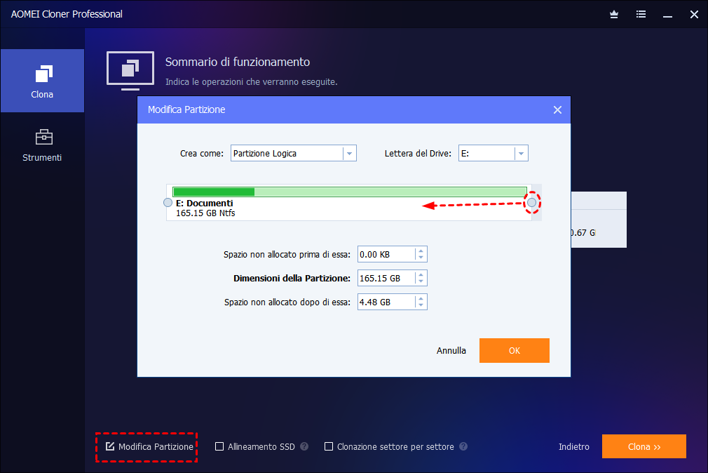 Passo 4: Anteprima della Clonazione e Modifica delle Partizioni (Opzionale)