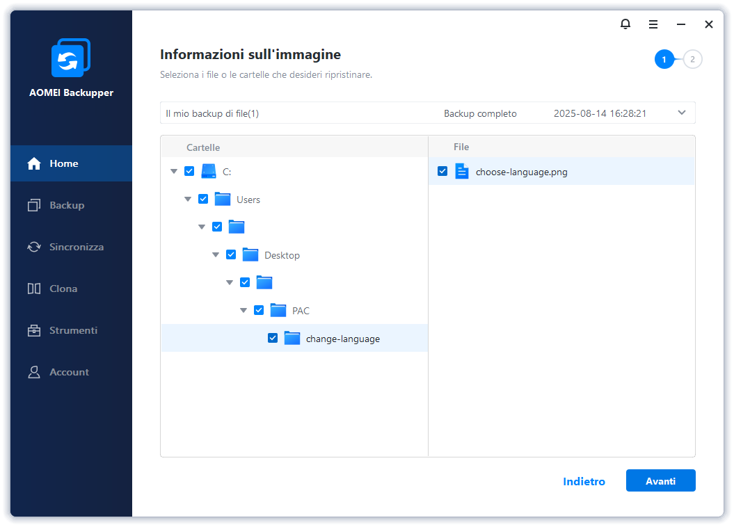 Passo 8. Scegli i file o le cartelle da ripristinare. Ad esempio, puoi selezionare l’intera unità C: per ripristinarne tutti i contenuti. Clicca su Avanti per proseguire.