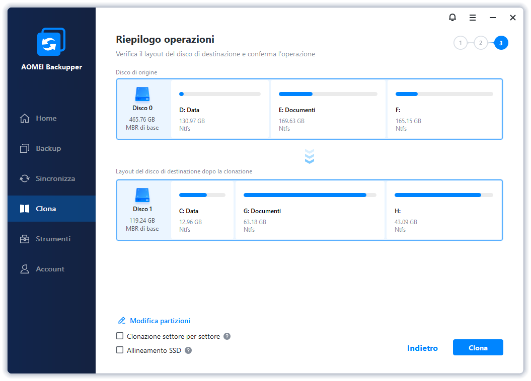 Modo 3: Clonare Direttamente la Scheda SD Android in Una Più Grande con Clonazione Freeware