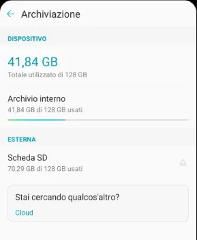 - Individuare Impostazioni > Impostazioni di archiviazione > Scheda SD e assicurarsi che sia visibile.