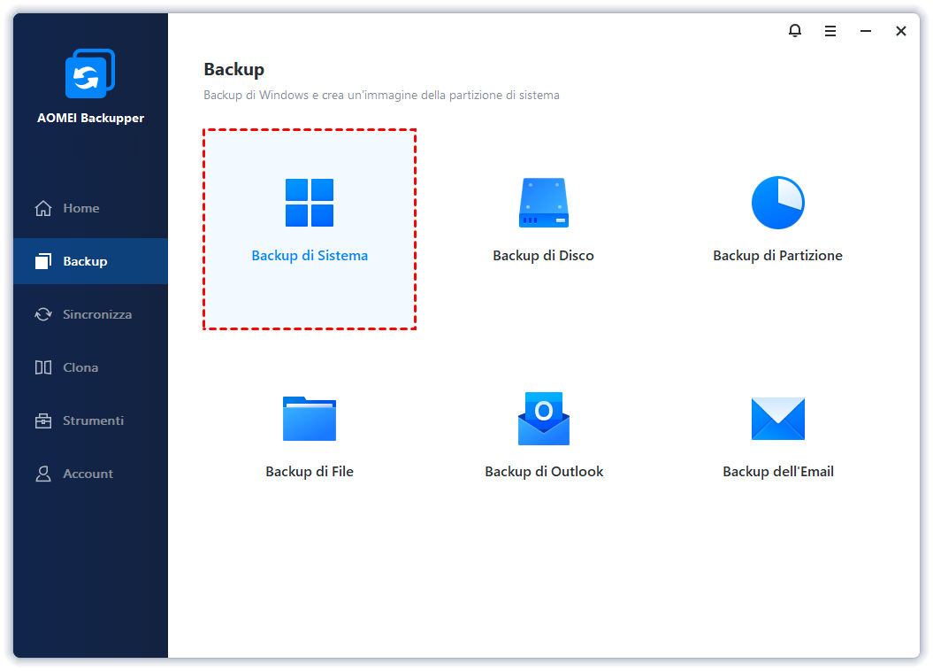 Passo 1. Installa e apri AOMEI Backupper. Seleziona Clona > Clona Sistema per trasferire sistema operativo.